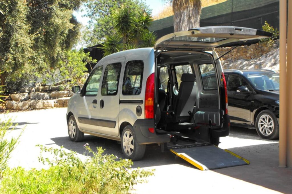The house is laid out on one level, with step-free access through the main living areas and outdoor spaces. Circulation space is generous, and the rooms are arranged to allow for easier movement. The swimming pool is fitted with a hoist, and the bathrooms include adaptations intended to support safer use. Additional equipment such as a profiling bed, hoist, and other aids can be arranged in advance, depending on individual requirements. Accessible transport and airport transfers are also available.